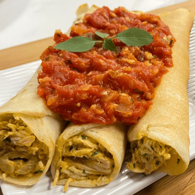 Panquecas de Frango cremoso 2 unidades delicioso.