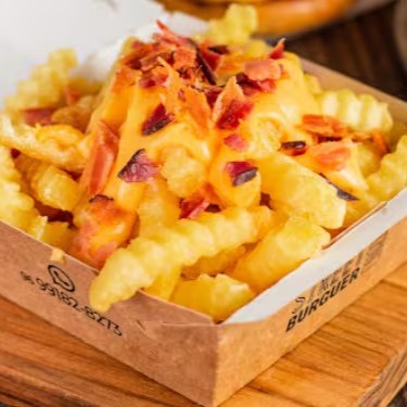 Batata Crinkle (250g) Com Creme Cheddar E Bacon.