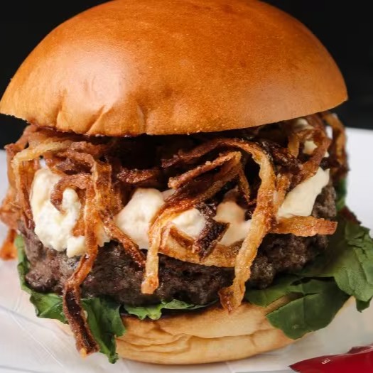 Pão, blend (160g), molho parmesão, cebola crispy & rúcula.