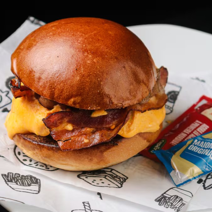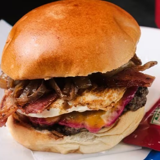 Pão, blend (160g), queijo do reino, ovo, bacon & cebola caramelizada.