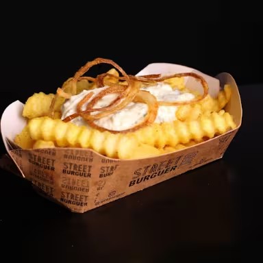 Batata crinkle com creme Gorgonzola & Cebola crispy