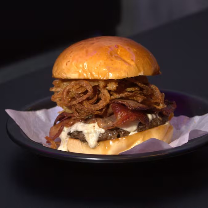 Pão, blend (160g), queijo do reino, cebola crispy & bacon caramelizado.