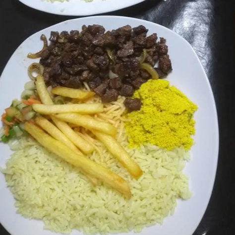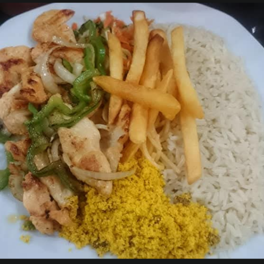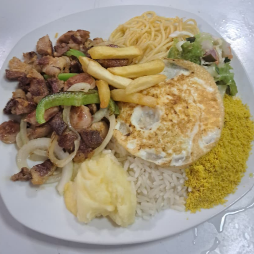 arroz ,macarrao,salada verde ,pure, ,batata frita,farofa
