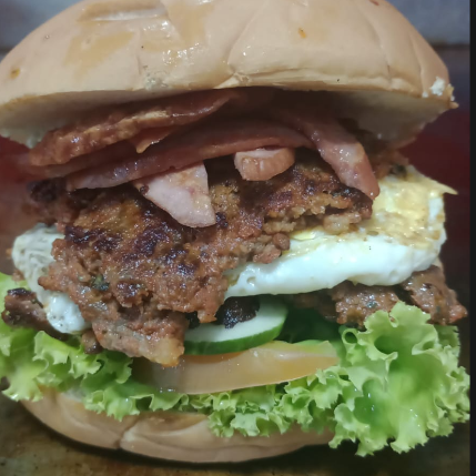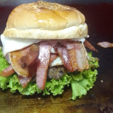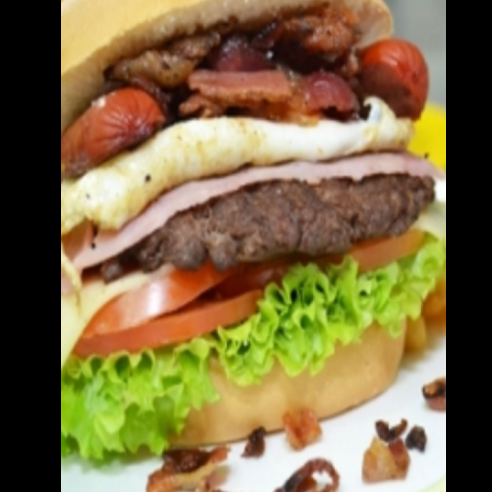 Pão bola, 02 carnes caseiras,calabresa, ovo, salada e batata palha.