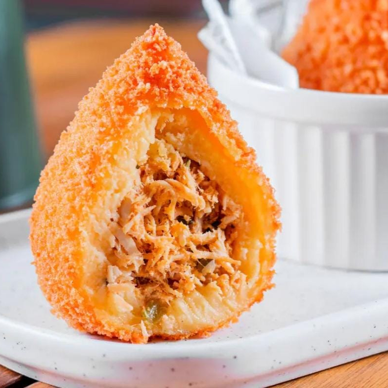 Frango desfiado, molho artesanal cresmoso, finalizada com queijo mussarela.