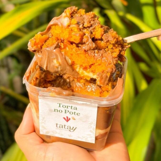 Cremes artesanais, bolo de cenoura finalizada com brigadeiro cremoso ao leite.