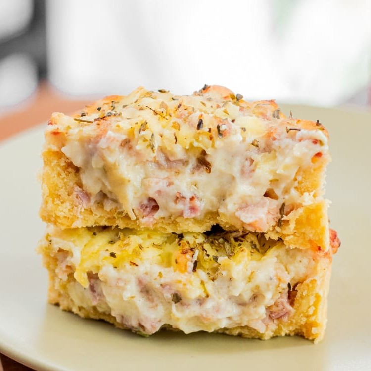 Delicie-se com nosso Pão Artesanal de Queijo e Presunto, uma exclusividade da Casa. Trata-se de uma obra-prima da panificação, com uma massa leve, macia e de sabor inconfundível. O recheio é com queijo mussarela suavemente derretido e presunto, que juntos criam uma combinação irresistível. E para finalizar, um toque de orégano, que acrescenta um aroma e sabor especiais.