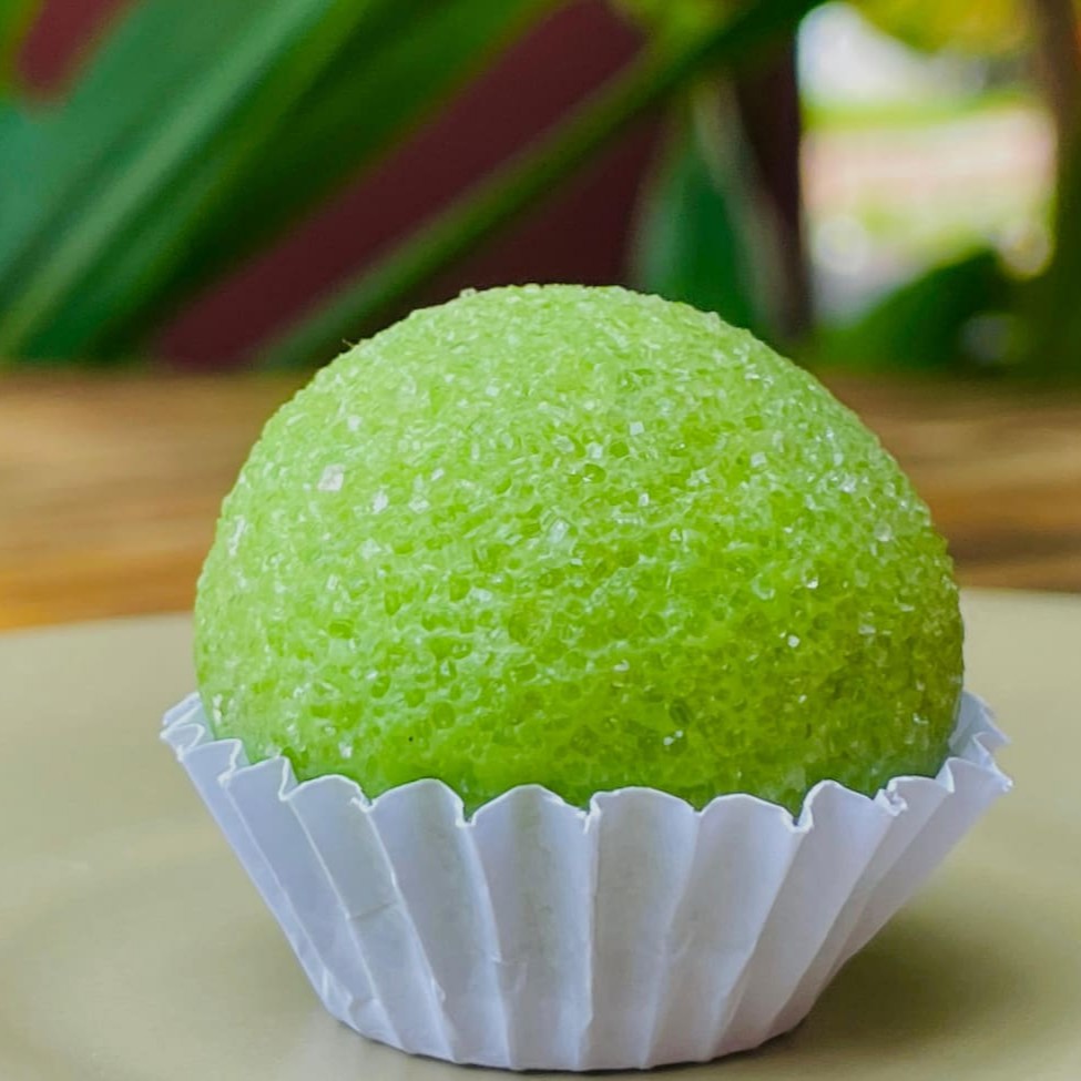 Gostinho de infancia <3 Um delicioso brigadeiro cremoso com uma excelente surpresa em cada mordida, com uma uva verde.
