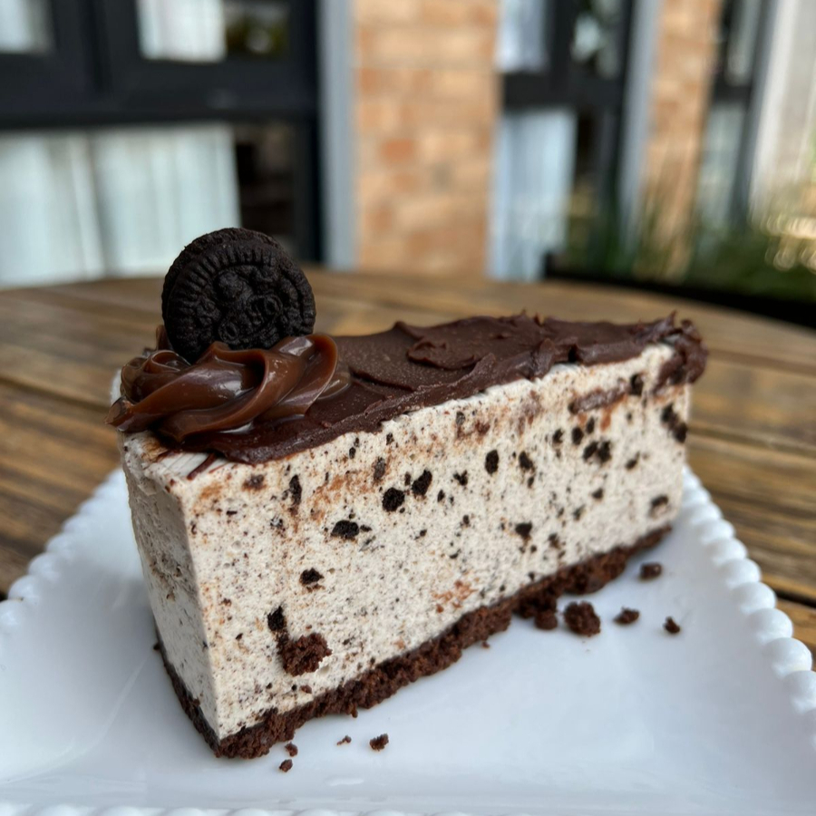 Uma fatia que vai te levar pra infância, um bolo gelado chocolatudo, com uma massa molhadinha, recheada com um brigadeiro cremoso, finalizado com uma calda de chocolate e granulados <3 Aproximadamente 90g