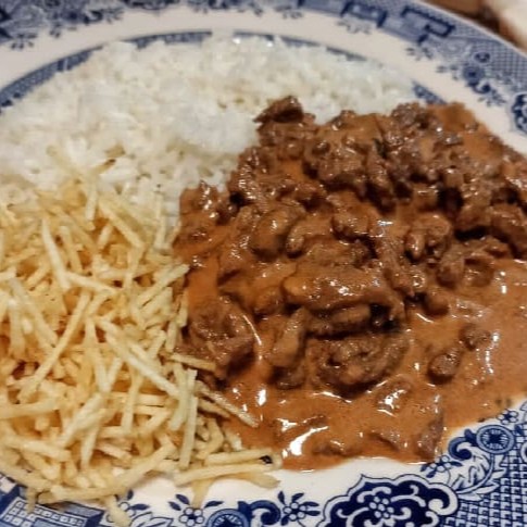 Acompanha Arroz, salada verde e purê debatata (Macarrão Opcional)