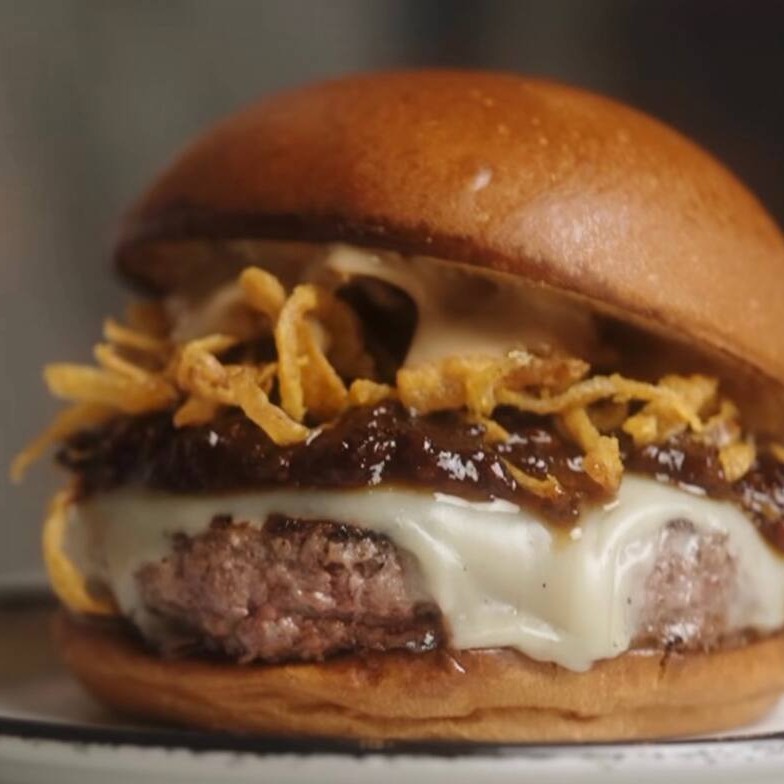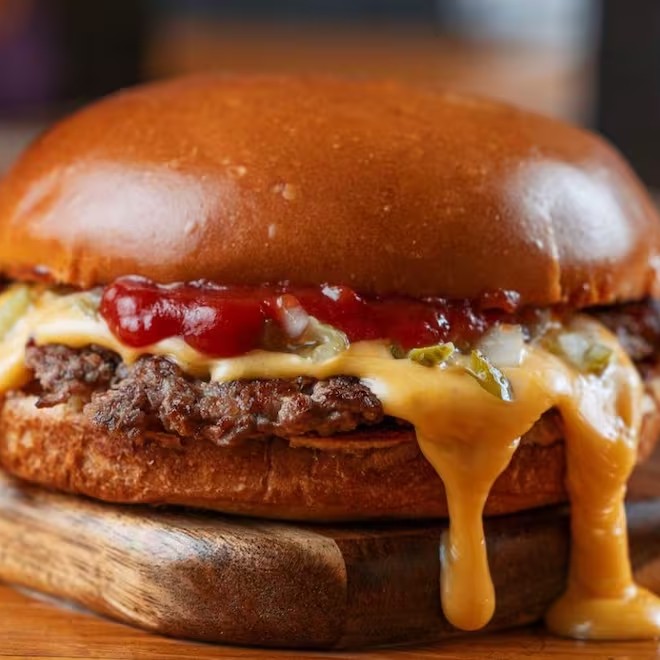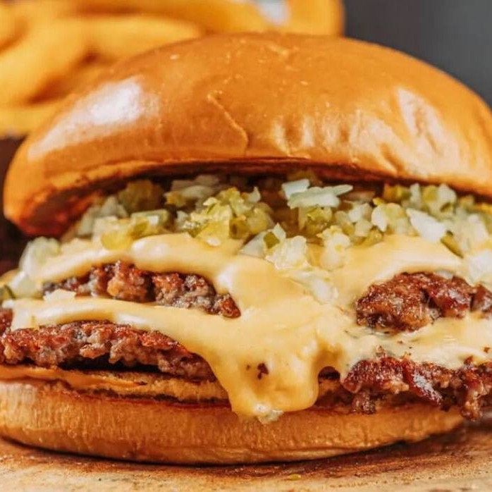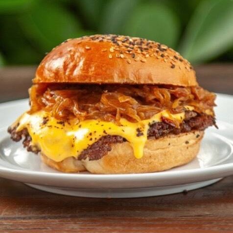 2 blends de 100g, muito queijo e cebola chapeado
