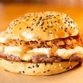 Blend de 160g, bluecheese(mussarela e gorgonzola, cebola caramelizada, crispy de cebola e nossa maionese branca da casa