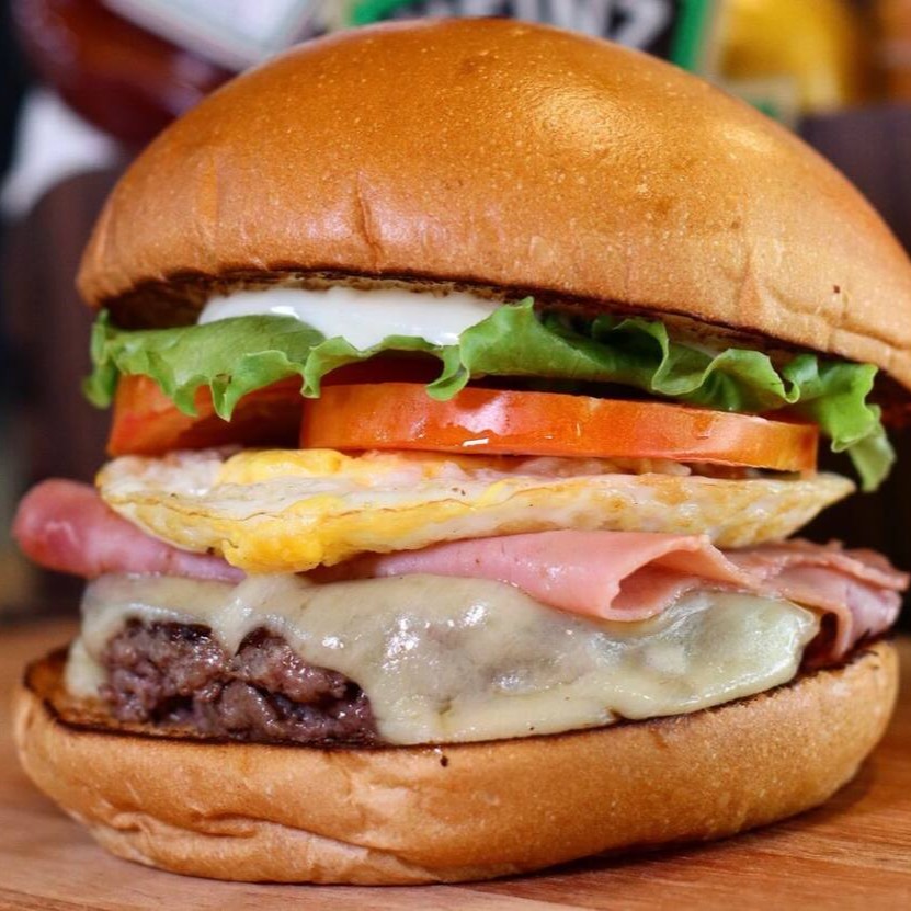 Blend de 160g ovo, queijo, presunto, tomate, alface e maionese da casa