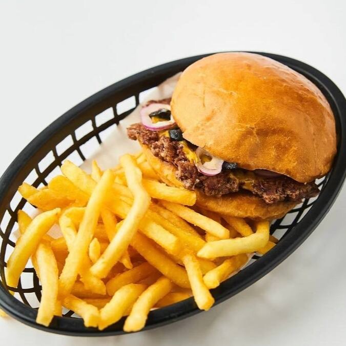 Smash de 100g, queijo cheddar, cebola chapeada e maionese da casa casa acompanha batata frita de 100g
