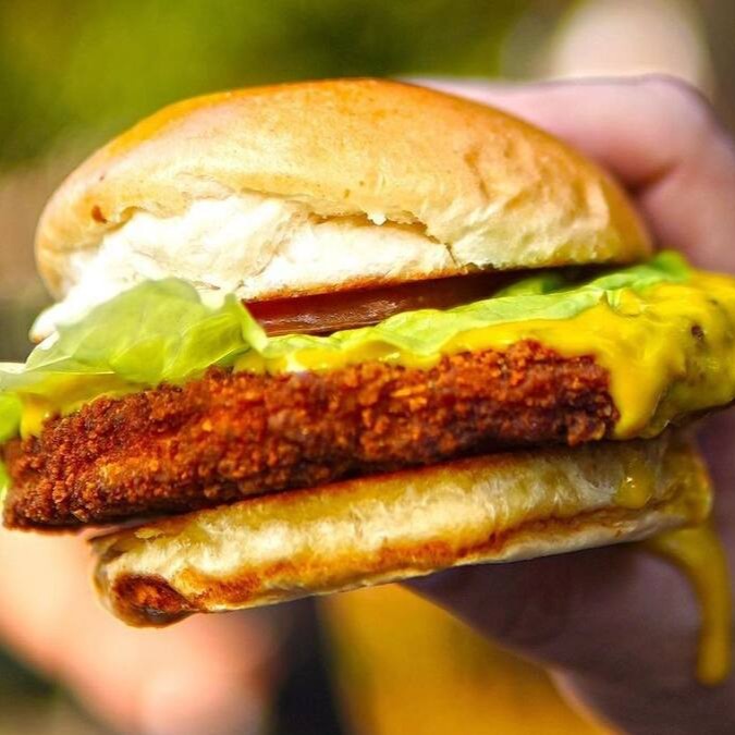150g de frango empanado, alface, tomate, queijo e maionese da casa