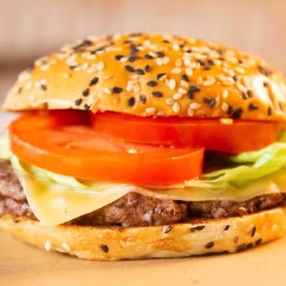 Carne de 100g, queijo, alface e tomate