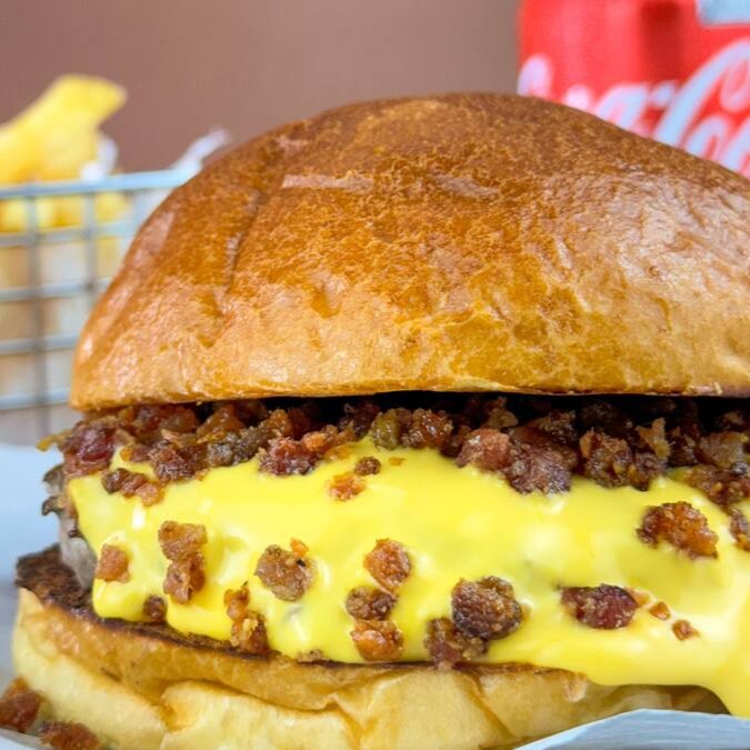 2 Smash De 100g, queijo cheddar, bacon e salada