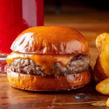 Cheeseburger de 160g, Pink limonade da casa, batata palito