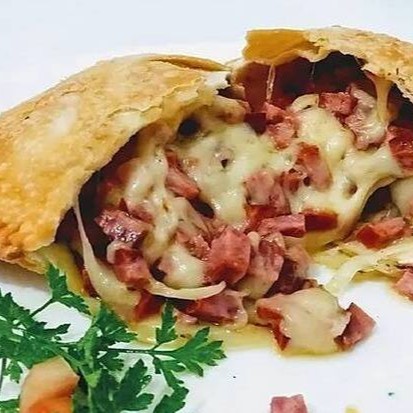Pastel 30cm Carne Seca Calabresa Catupiry OBS: recheio de ponta a ponta