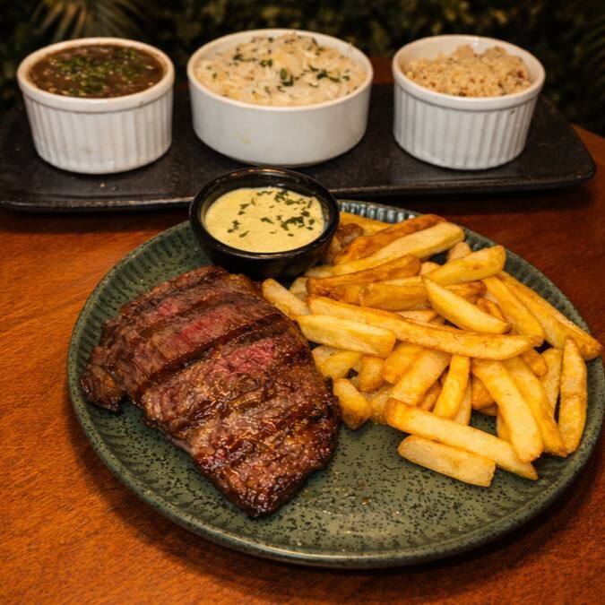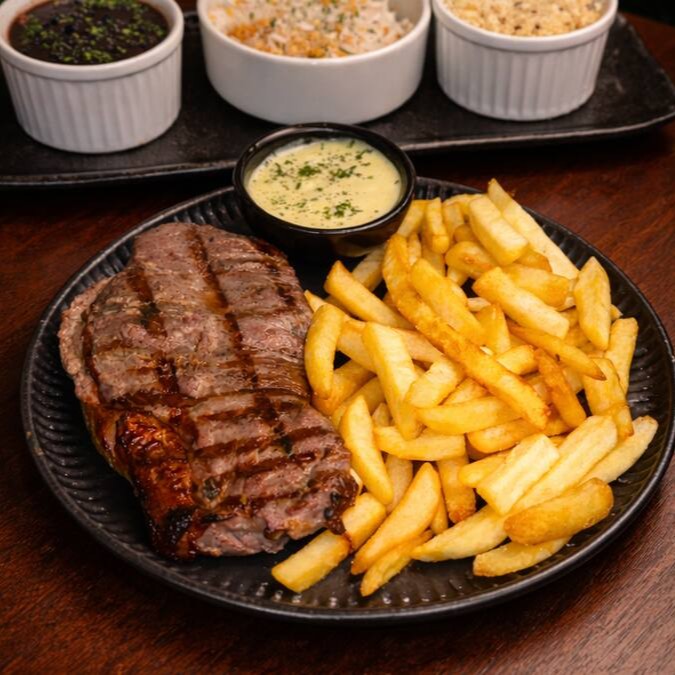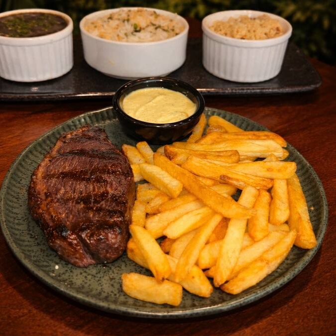 Filé Mignon bovino, Arroz branco e batata frita