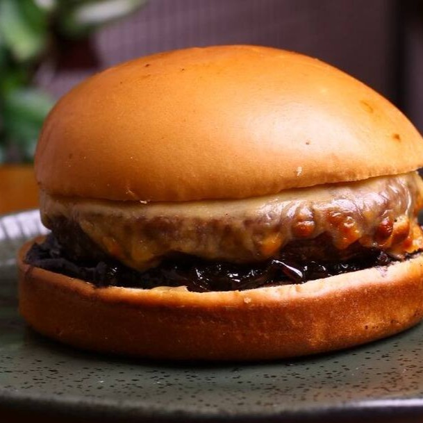 Pão brioche, blend maturado (150g) e queijo.
