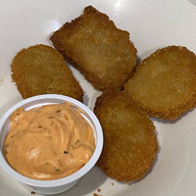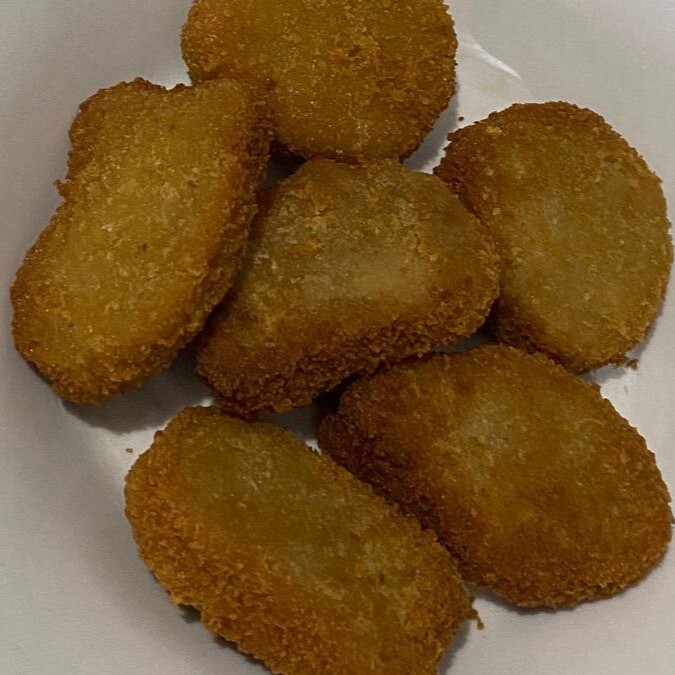 Nuggets de frango veg fritos; acompanha 1 molho da Tia Mara (30ml - maionese veg, azeite e especiarias) - 4 unidades