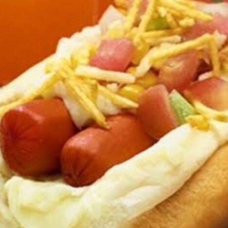 Pão especial do vagão, (150g), 2 salsichas goshen grelhadas, purê de batatas, vinagrete, molhos do vagão (brown e yellow); acompanha pote (140ml) com batatas palhas.