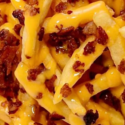 Batata palito frita com molho de queijo cheddar e bacon, acompanha maionese da casa