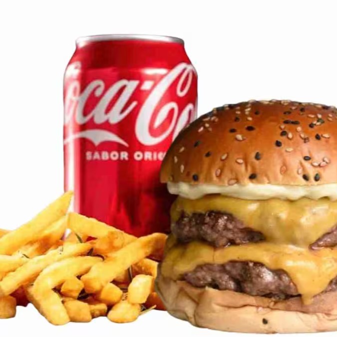 2 Burgers 160g, qamerican cheese, maionese da casa no pão brioche.