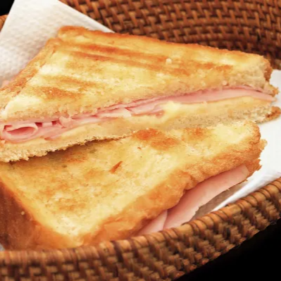 Pão de forma selado na chapa, queijo e presunto.