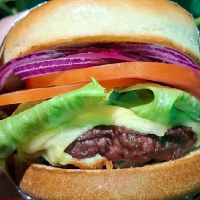 Pão selado na manteiga,molho da casa, hambúrguer artesanal,queijo prato, alface,tomate,cebola roxa