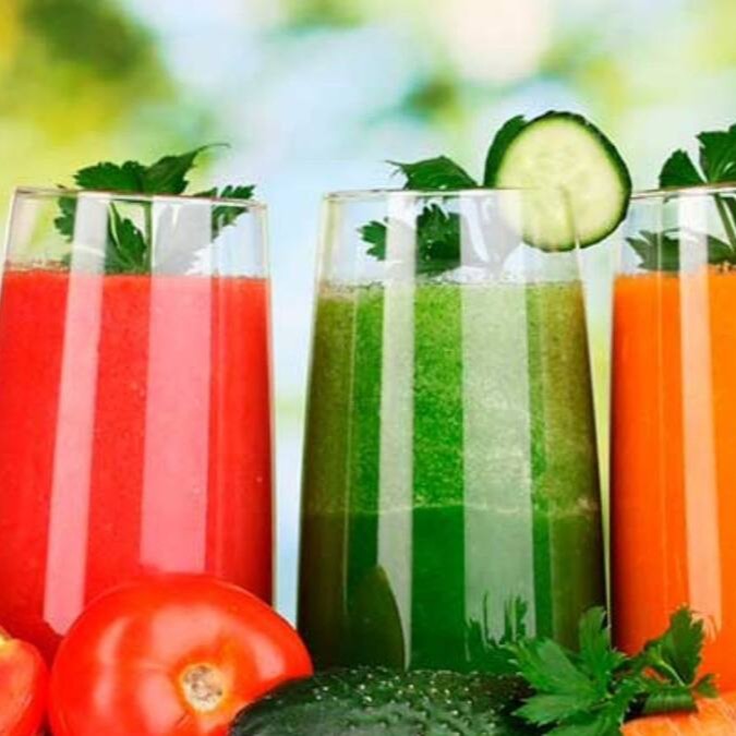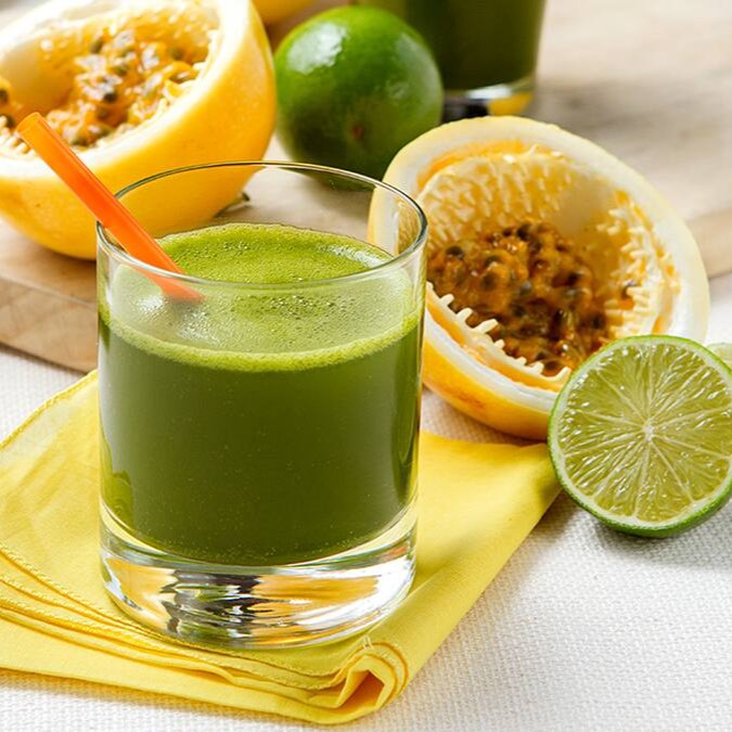 Couve, agrião, espinafre, salsa, gengibre, limão, laranja e acerola.