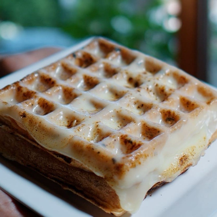 Waffle simples. Escolha 1 delicioso acompanhamento.