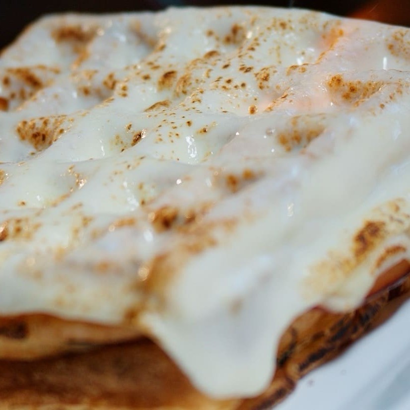 Waffle, delicioso peito de peru , queijo, requeijão e muçarela gratinada