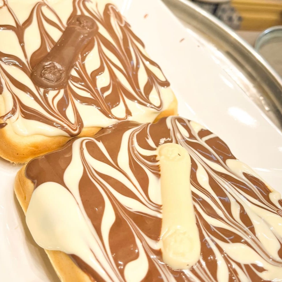 Waffle, delicioso chocolate branco e chocolate ao leite.