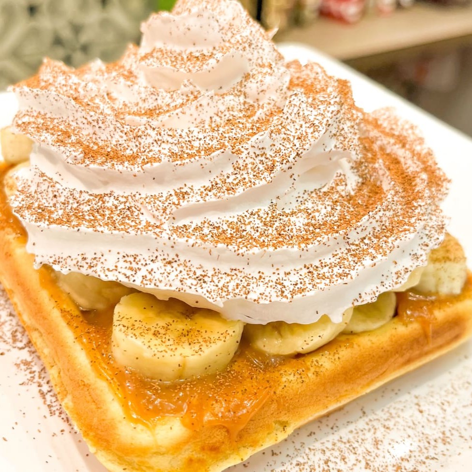 Waffle, maravilhoso doce de leite , banana , chantilly e canela .