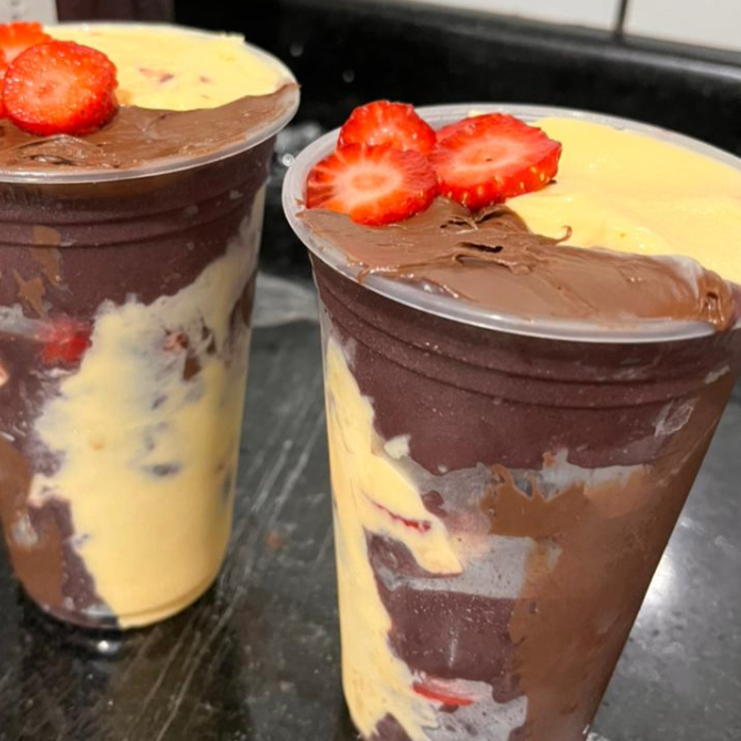Acompanha açaí, mousse de maracuja, nutella e morango