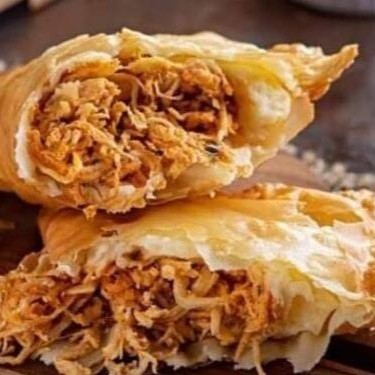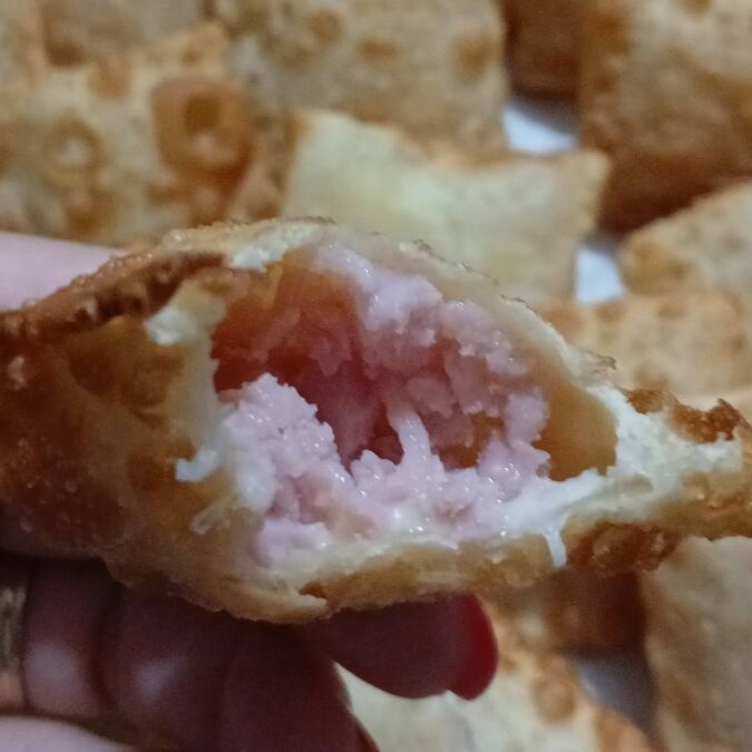 Massa sequinha e crocante com recheio de Frango e cream cheese