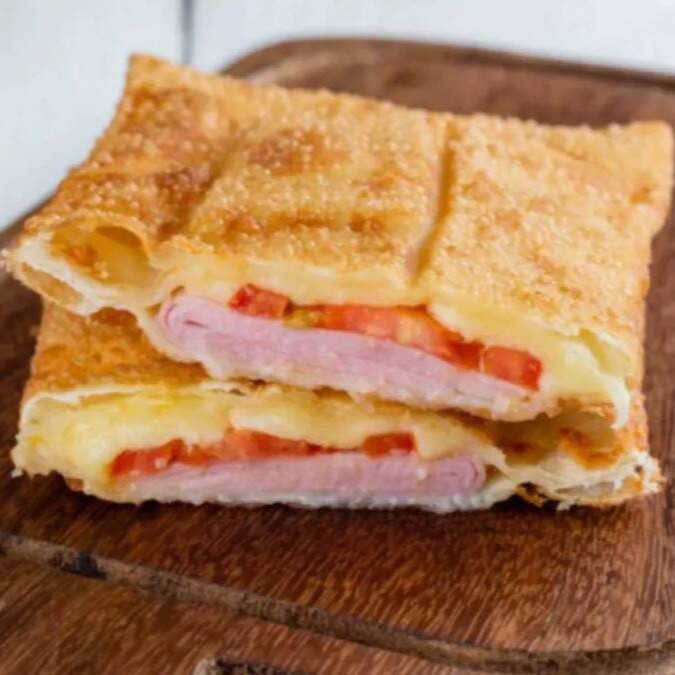 Massa crocante recheada com Queijo Muçarela derretido, uma opção simples e deliciosa.
