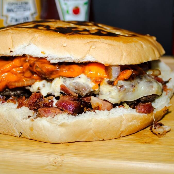 Pão de hamburguer com gergelim, 180g hamburguer caseiro, bacon crocantes, batata palha, ovo e nosso famoso queijo fundido.