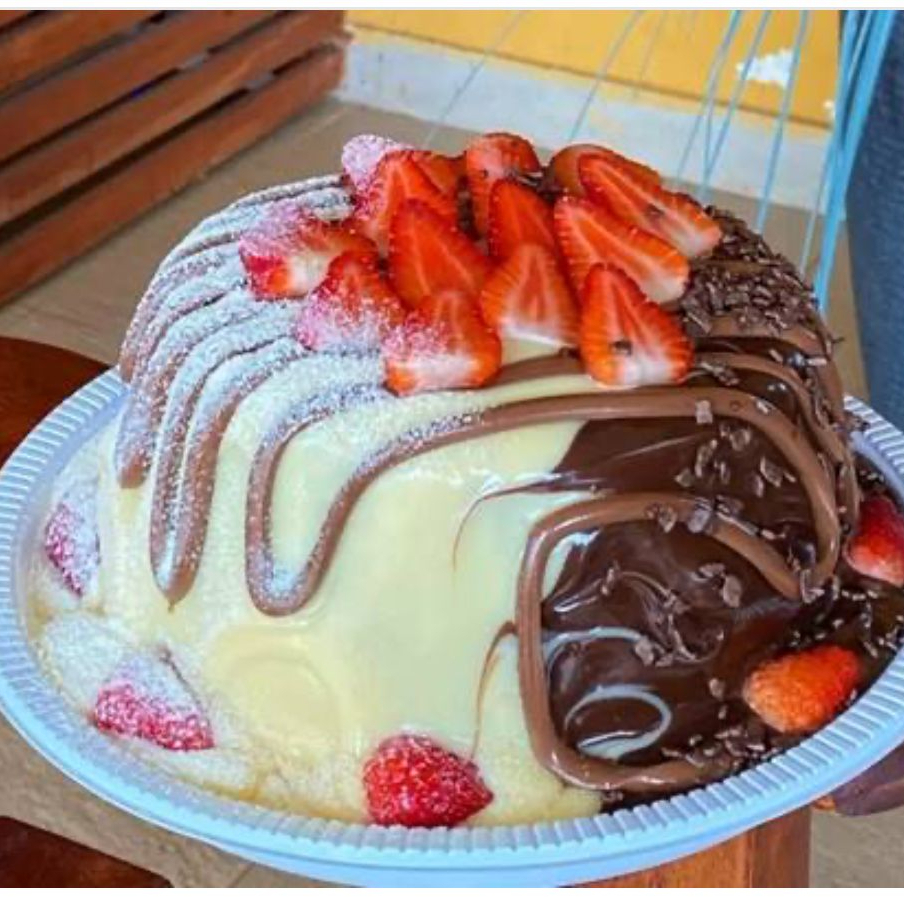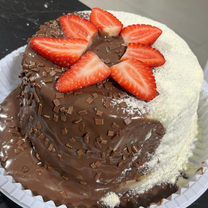 massa chocolate cobertura metade brigadeiro ninho outra metade brigadeiro 50%