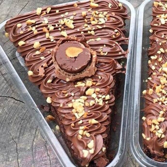 Deliciosa fatia de brownie com brigadeiro Nutella castanha do pará e Nutella e metade de Ferrero rocher