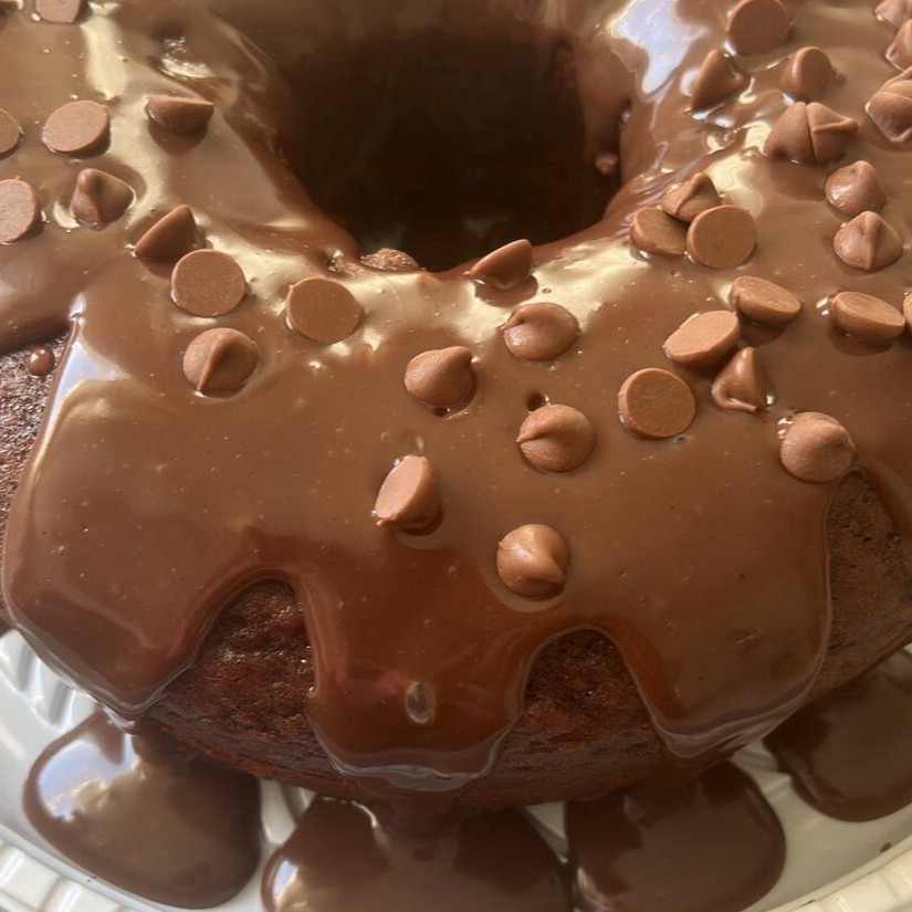 Delicioso bolo de chocolate com brigadeiro 50% cacau
