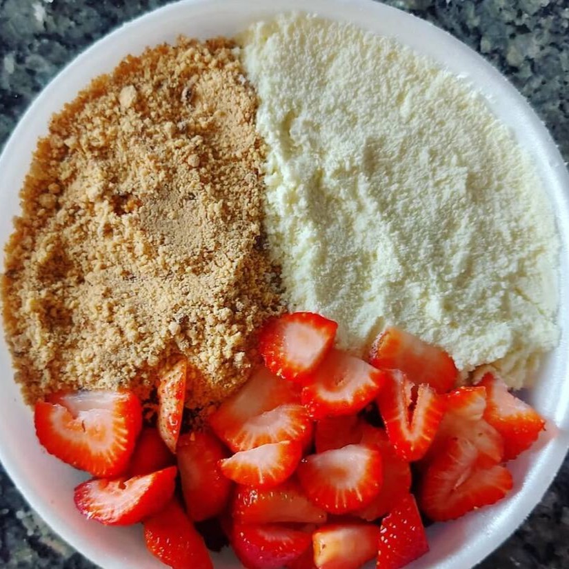 Delicioso açaí com morangos ,paçoca e leite em pó