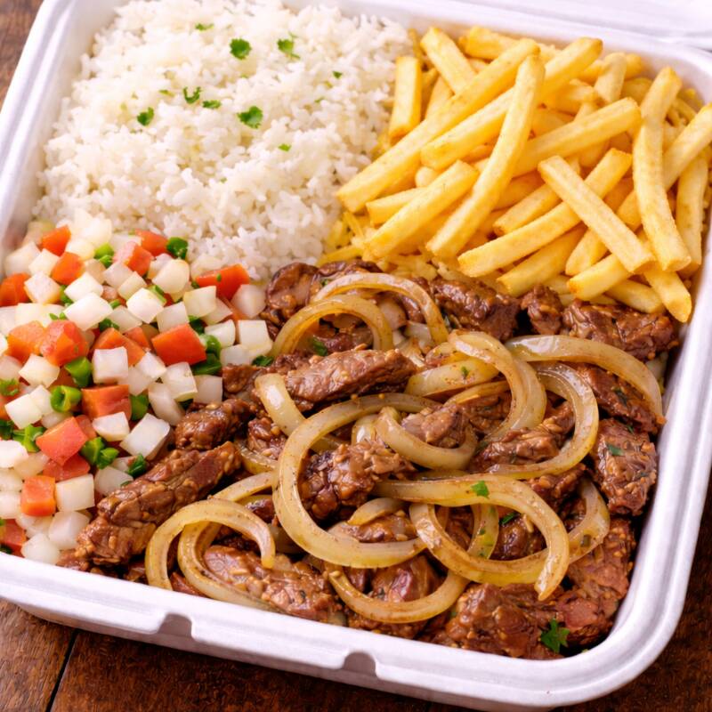 Acompanha Arroz branco, vinagrete e batata frita