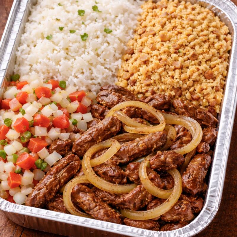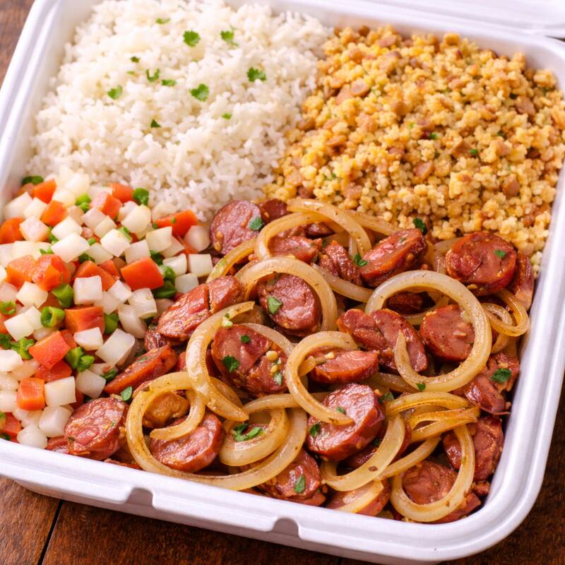 Acompanha Arroz branco, vinagrete e Farofa
