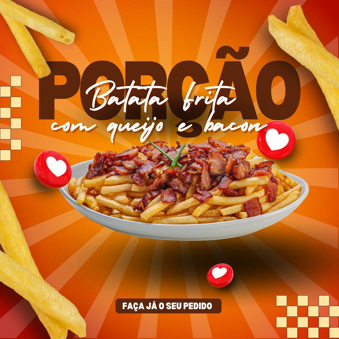 Porção de Batata Frita com Bacon e Queijo serve 2 pessoas