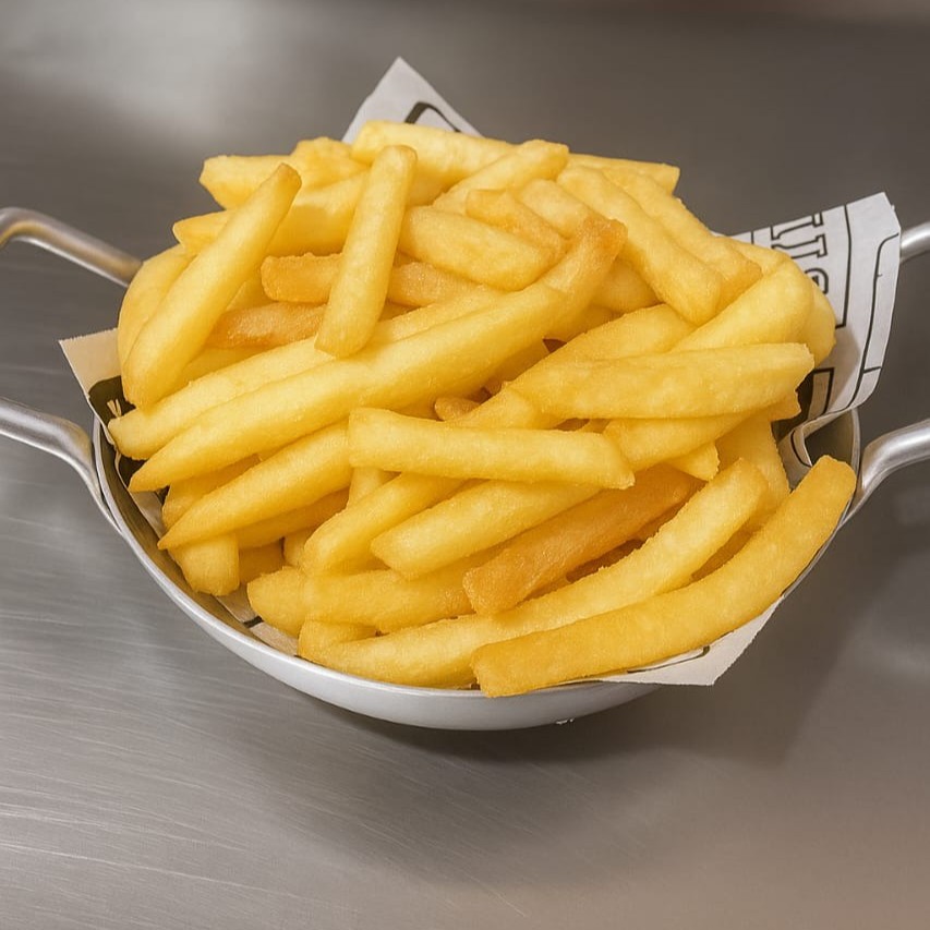 Deliciosa porção de batata frita, temperadas com uma pitada de sal para realçar o sabor. Ideal para acompanhar um hamburguer
