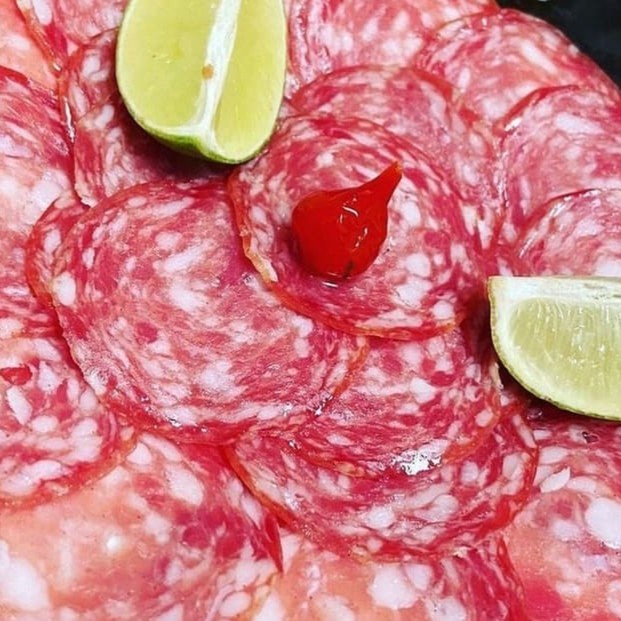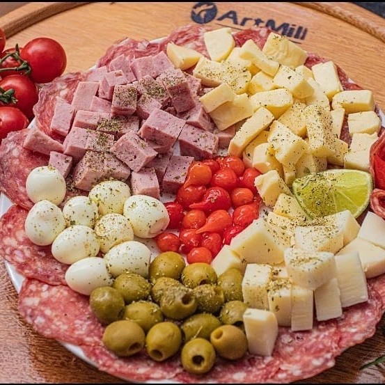 Salame,palmito,ovo de codorna,azeitona,presunto,mussarela e pimenta biquinho