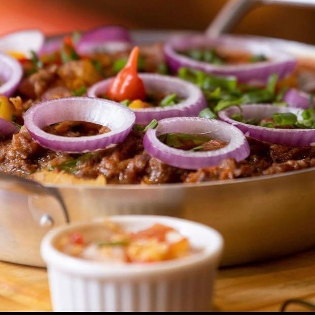 Moela cozida com molho especial da casa, acompanha vinagrete e pão